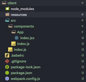 Trong folder client tạo folder src chứa file index.js, file này là nơi để viết react hoặc import các file css,scss.. để tạo bundle file là main.js trong file webpack.config.js đã cấu hình. File này có nội dung như sau: