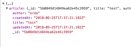 Khi nhập nội dung title, body & author, khi submit tạo blog. Nếu thành công kết quả khi test ở debug của chorme như sau: