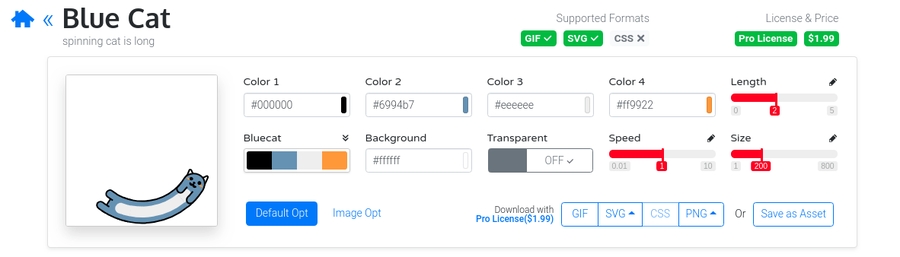 Vào xem thì mình nhận ra là trang này có rất nhiều hình loading vui vui, mà như con mòe này ko chỉ có thể đổi chọn palette màu, mà còn chỉnh được speed, size rồi preview trước khi download với mấy loại định dạng nữa.